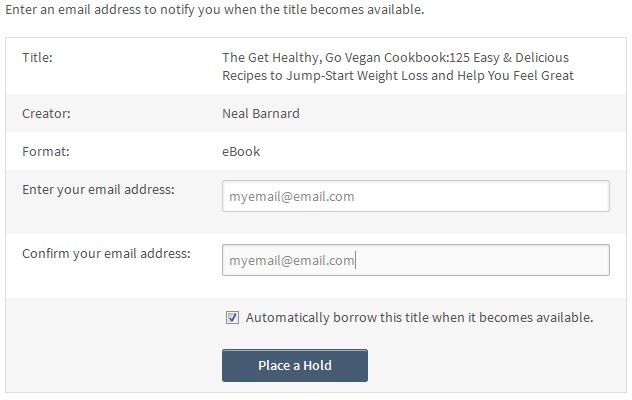 1. Select Place a Hold to place an unavailable title on hold.